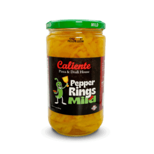 A jar labeled "Caliente Hot Pepper Spread" contains a red pepper spread, with a black lid and a capacity of 7 oz (198g). Perfect for adding some Pittsburgh Pizza flair to your dishes or enjoying at the Craft Beer Bar in Pittsburgh.
